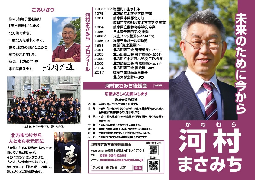 これからの北方町に、同じ社会・同じ未来を描く政治家を選びたい。